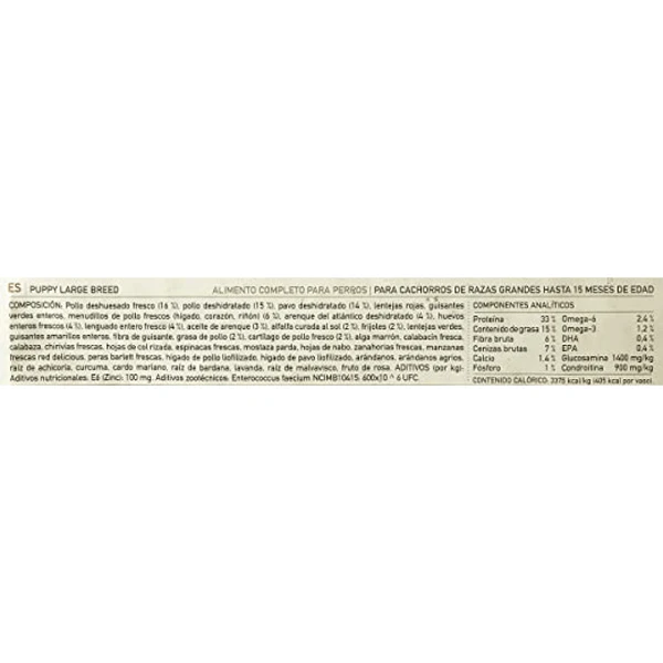 Acana Large Breed Puppy Dry Food is crafted to meet the unique growth needs of large breed puppies, helping them develop strong muscles, healthy joints, and controlled body weight. With 70% premium animal ingredients—free-run chicken, cage-free eggs, and wild-caught flounder—it delivers high-quality protein to support lean muscle mass. The formula includes fresh fruits, vegetables, and botanicals for natural vitamins, minerals, and antioxidants, while DHA and EPA from fish promote brain and eye development. Balanced calcium-to-phosphorus ratios help prevent excessive bone growth, reducing joint stress as your puppy matures. Grain-free and free from artificial additives, it provides complete, biologically appropriate nutrition for a healthy start in life.