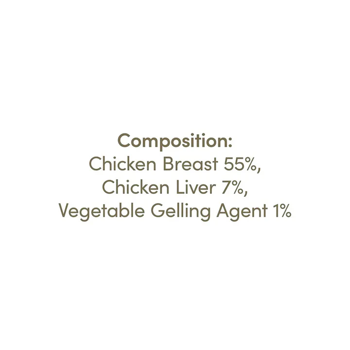 Ingredients: Chicken Breast (55%), Chicken Liver (7%), Rice Flour, Vegetable Gelling Agent.