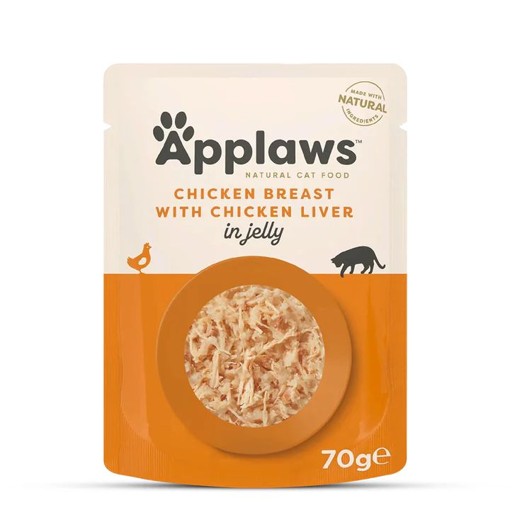 Applaws Chicken Breast with Liver in Jelly is a 100% natural complementary wet food for adult cats, featuring a limited‑ingredient recipe with no artificial colors, flavors, or preservatives. Each pouch contains 55% chicken breast and 7% chicken liver gently set in a soft jelly, delivering high‑quality protein plus a natural source of taurine for heart and eye health. The inclusion of chicken as a natural source of omega‑6 supports healthy skin and a glossy coat, while the jelly adds hydration and palatability. Feed up to two pouches daily depending on size, and always provide fresh drinking water.
