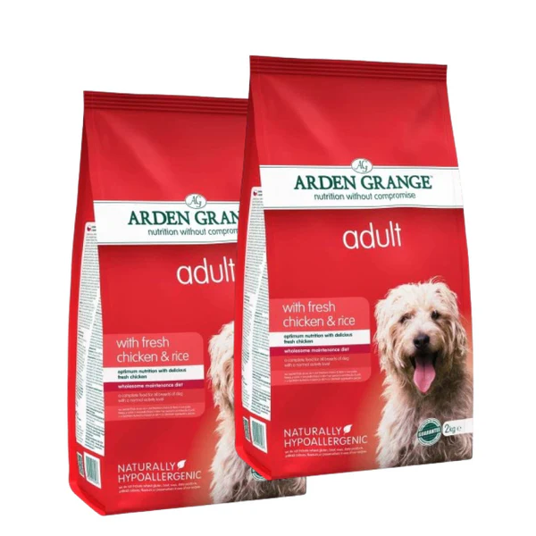 Arden Grange Chicken & Rice Adult Dog Dry Food is a complete, hypoallergenic diet designed for adult dogs of all breeds. Made with fresh chicken and chicken meal as highly digestible protein sources, it helps maintain strong muscles and overall vitality. Rice provides a gentle, easily digestible carbohydrate for sustained energy, making it suitable even for dogs with sensitive stomachs. The recipe includes balanced levels of vitamins, minerals, and antioxidants to support a robust immune system, while omega-3 and omega-6 fatty acids promote healthy skin and a glossy coat. Added prebiotics aid digestive health, and the wheat-, soy-, and dairy-free formula ensures reduced risk of dietary sensitivities. Perfect for daily feeding, it offers complete and balanced nutrition for long-term health and well-being.