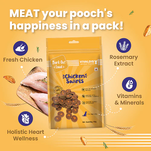 Formulated without artificial colours, flavours, or harmful preservatives, Bark Out Loud Chicken Swirls are a safe and wholesome choice for health-conscious pet parents. They’re also easy to digest, making them ideal even for dogs with sensitive stomachs. Reward your pup with the goodness of real chicken and the joy of a treat that’s as nourishing as it is tasty.