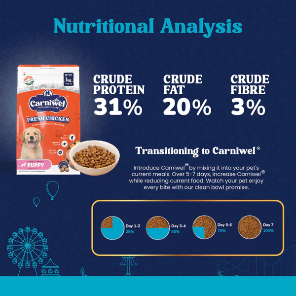 Carniwel Fresh Chicken Kibble Large Breed Puppy Dog Dry Food is expertly crafted to support the steady growth and healthy development of large breed puppies. Featuring fresh chicken as the first ingredient, it delivers high-quality, easily digestible protein to build strong muscles and support active growth.