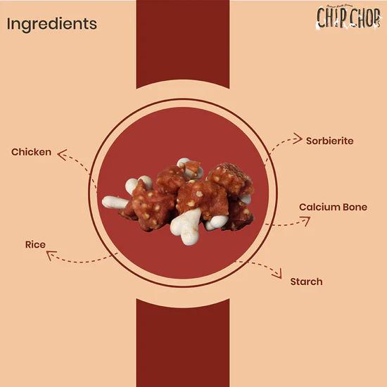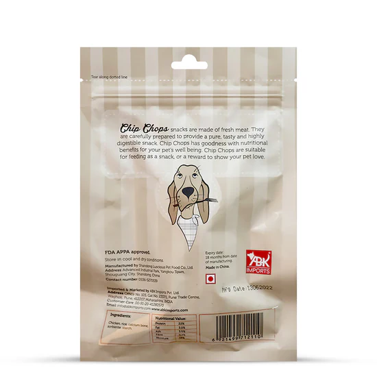 Chip Chops Chicken & Calcium Bone Dog Meaty Treat delivers a nutritious, high-protein, and low-fat snack made from real fresh chicken and calcium-enriched bones. This combination supports overall health, providing essential protein for muscle maintenance and calcium for strong teeth and bones.