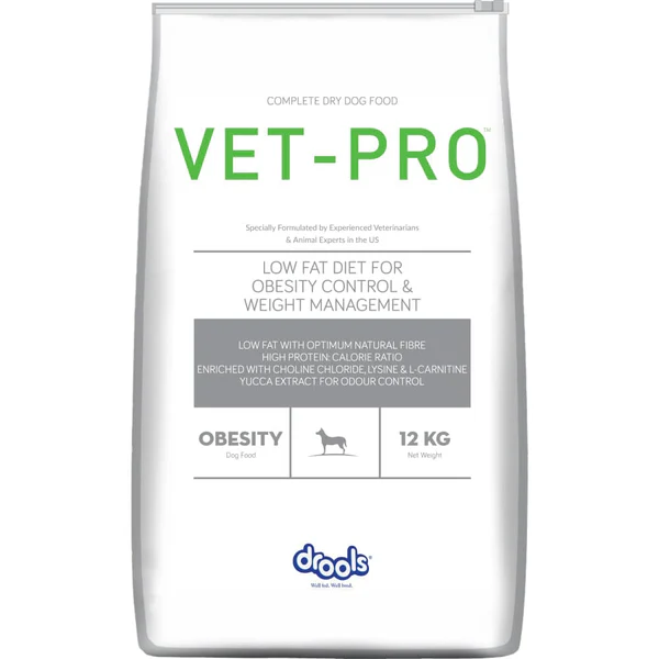 Drools VET PRO Obesity Adult Dog Dry Food is a veterinarian-recommended formula specially crafted to help manage and reduce excess weight in adult dogs. Ideal for overweight and obese dogs, this calorie-restricted diet provides the right balance of fiber, protein, and essential nutrients to support steady, healthy weight loss. The high protein-to-calorie ratio helps preserve lean muscle mass during the weight reduction process, while L-carnitine aids in fat metabolism. The food also includes soluble and insoluble fibers to promote satiety, keeping your dog fuller for longer and reducing begging behavior. Fortified with vitamins, minerals, and antioxidants, this diet ensures your dog continues to receive all the nutritional support necessary for joint health, immunity, and overall vitality—even on a reduced-calorie regimen.
