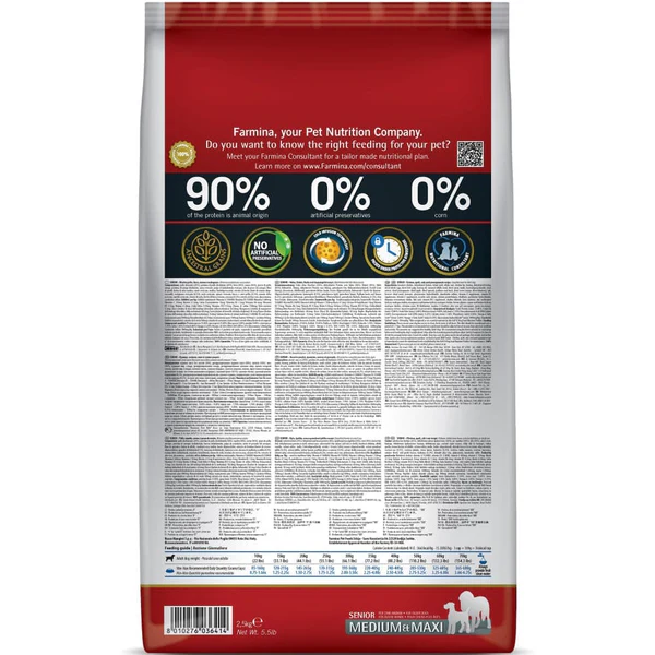 Targeted nutrition to support healthy aging in senior medium and large breed dogs. Support graceful aging with a scientifically balanced formula crafted for senior medium and large breed dogs. Farmina N&D Chicken & Pomegranate Ancestral Grain Senior Dry Food combines the goodness of free-range chicken, antioxidant-rich pomegranate, and low-glycemic ancient grains like spelt and oats. This recipe is designed to maintain lean muscle, support joint health, and promote overall vitality in older dogs. With controlled fat content, added glucosamine, and a heart-healthy blend of nutrients, this meal helps manage weight and reduce inflammation while preserving mobility and cognitive function.