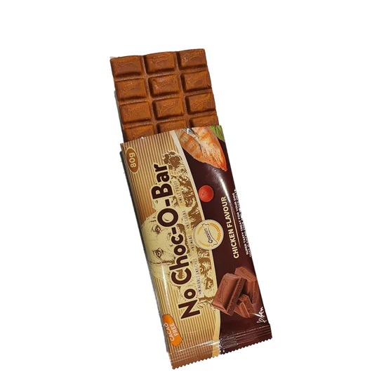 Gnawlers No Choc-O-Bar Chicken Flavour is a cacao-free, dog-safe treat crafted to resemble a chocolate bar but with a savory chicken flavor dogs love. This innovative treat is designed to make snack time fun and interactive while providing a complementary feed that supplements your dog’s daily nutritional needs.