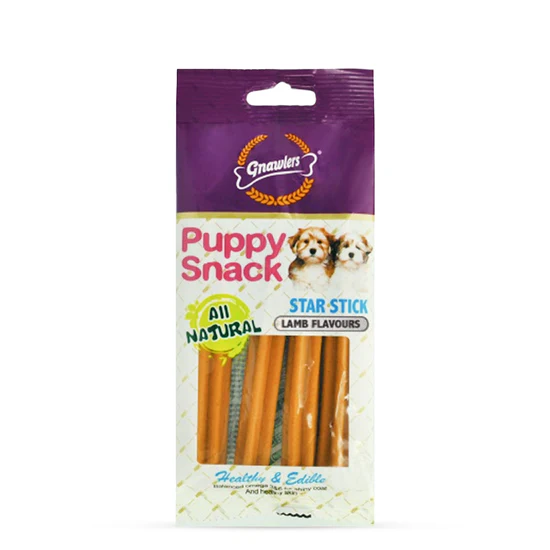 Gnawlers Puppy Snack Star Stick Lamb Flavor Puppy Treat is a highly digestible, vitamin-enriched, and natural reward crafted for puppies over two months old. Made with high-quality, human-grade chicken and an enticing lamb flavor, each star-shaped stick supports both taste and nutrition during training sessions or as a daily snack.