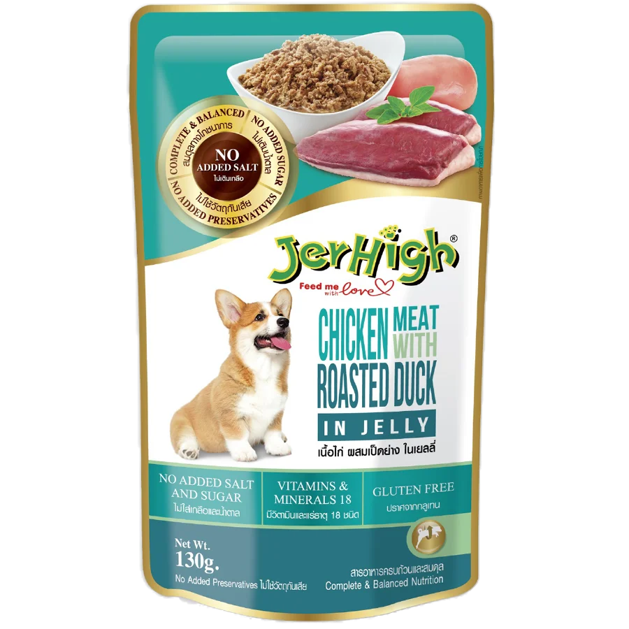 Turn mealtime into a feast with JerHigh Chicken with Roasted Duck in Jelly Wet Food – a deliciously indulgent meal crafted with real chicken and premium roasted duck, wrapped in a rich, jelly-based gravy. Whether you have a Shih Tzu in South Kolkata or a Lab in Lake Town, this pouch delivers balanced nutrition and irresistible taste in every serving.