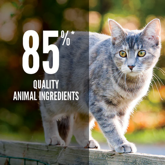 ORIJEN Original Dry Cat Food offers a nutrient-dense, biologically appropriate diet made with 85% premium animal ingredients, including free-run poultry, wild-caught fish, and cage-free eggs. This formula mirrors the natural ancestral diet of cats by incorporating WholePrey inclusions—meat, organs, and bone—to provide a natural source of essential nutrients.