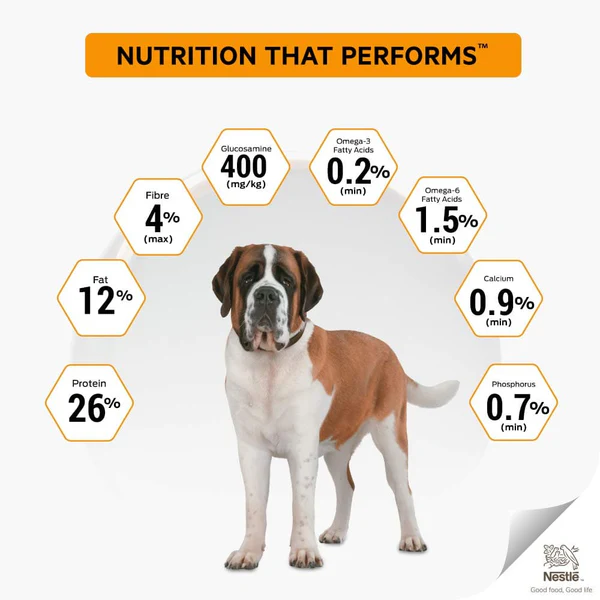 Purina Pro Plan’s large breed adult formula is specially designed for dogs weighing over 25 kg, including breeds like Labradors, Golden Retrievers, and Greyhounds. Developed by over 500 veterinary nutritionists, this formula supports joint resilience, lean muscle retention, and overall vitality. High-Quality Protein & Joint Support, With real chicken as the primary ingredient, this formula delivers 26% protein and 12% fat—fueling lean muscle mass without excess calories. It’s enhanced with 400 mg/kg glucosamine, EPA, and Omega-3 fatty acids to help maintain healthy joints and mobility.