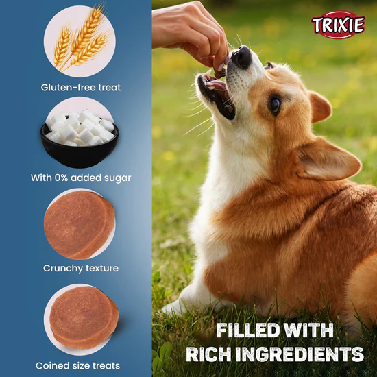 Free from artificial colours, flavours, and preservatives, Trixie Premio Duck Coins are easy to digest and suitable even for dogs with sensitive stomachs. Give your dog the joy of a meaty, nutritious treat with every bite—Trixie Premio Duck Coins deliver a satisfying blend of taste and health in one delicious round.