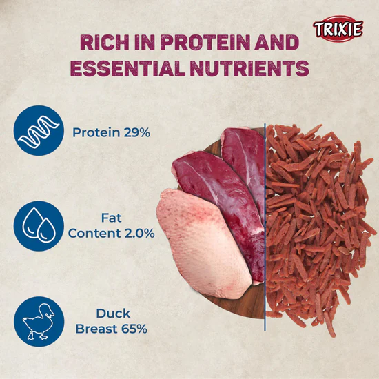 Whether you’re bonding with your cat, reinforcing good behaviour, or just showing some love, Trixie Premio Duck Filet Bites make it easy to treat them with something both indulgent and nutritious. Soft, savoury, and irresistibly meaty—your cat will keep coming back for more.