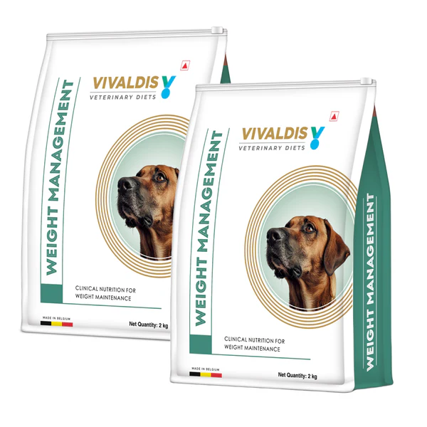 Vivaldis V Diet Weight Management Diet Dog Dry Food is a veterinary-formulated diet created to help dogs achieve and maintain an optimal body weight. It features a reduced-calorie, low-fat formula enriched with high-quality proteins to preserve lean muscle mass while promoting healthy weight loss. Added fiber supports satiety, helping dogs feel fuller for longer, and essential vitamins and minerals ensure complete, balanced nutrition. This diet also supports joint health and overall well-being, making it ideal for dogs prone to obesity or requiring long-term weight control.