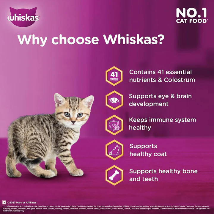 Formulated with expert collaboration from the Walthamâ„¢ Petcare Science Institute, Whiskas ensures nutritional completeness that fosters growth, vitality, and a joyful mealtime experience for your kitten.